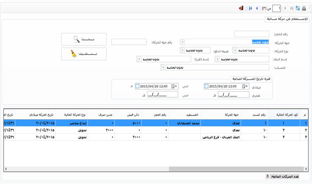 الاستعلام عن حركات مالية