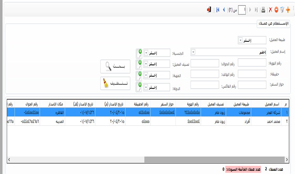 الاستعلام عن عملاء