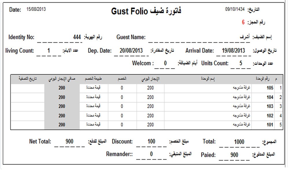 فاتورة فاتورة الحجز