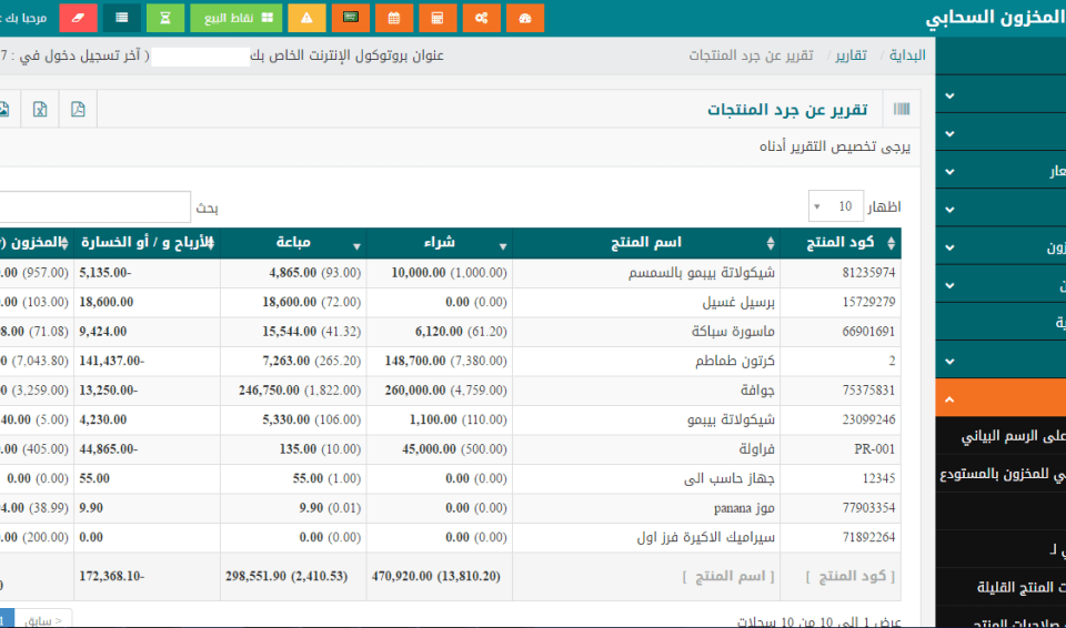 تقرير جرد المنتجات