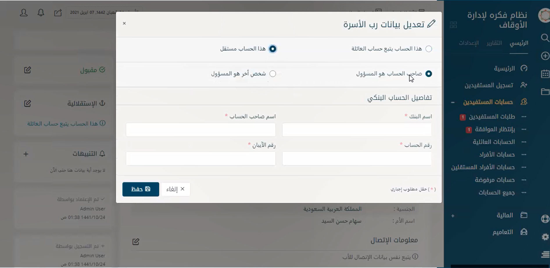 إدارة حسابات المستفيدين