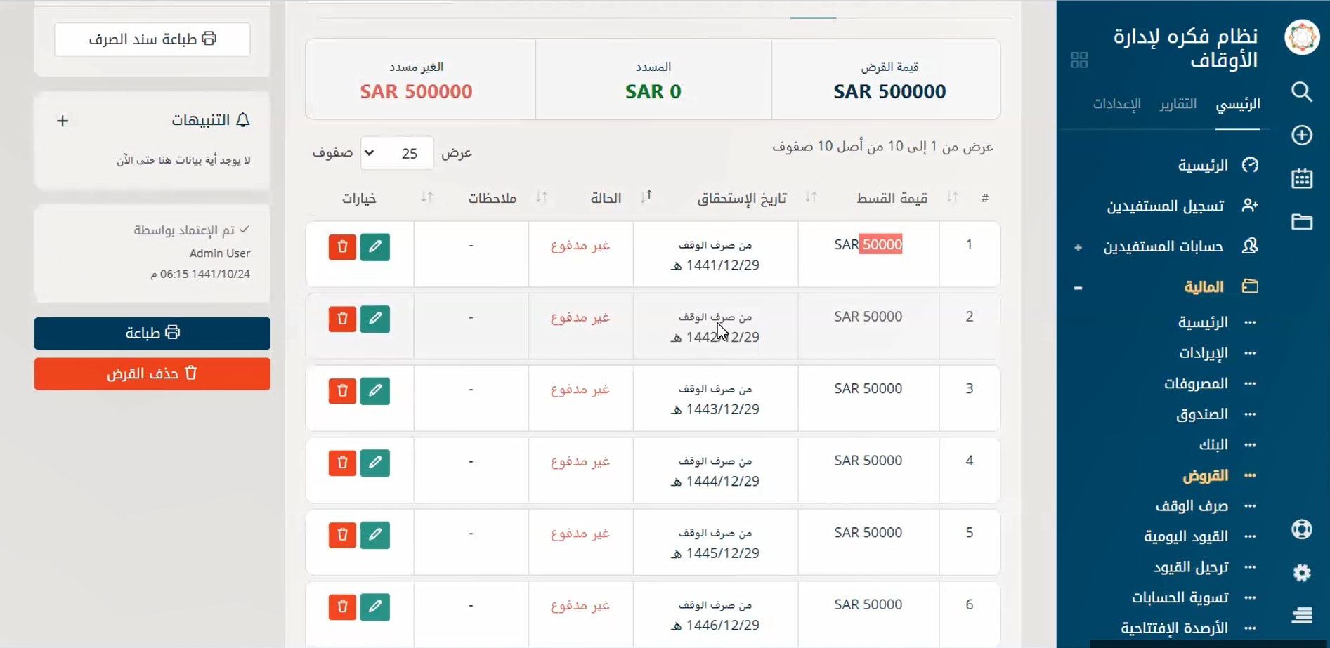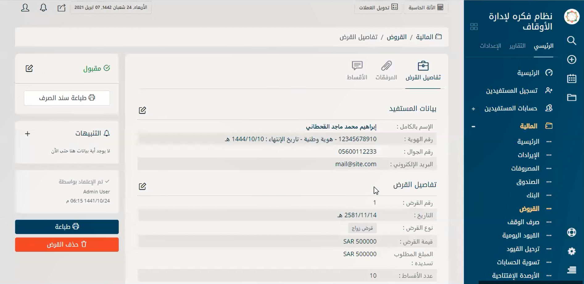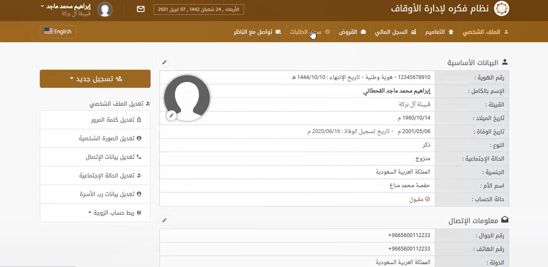 لقطات حية من نظام إدارة الأوقاف
