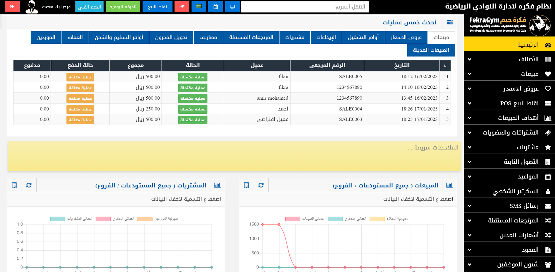 برنامج ادارة جيم والأندية الرياضية هو أفضل تجربة إدارة لجميع المنشآت الرياضية ومراكز اللياقة باللغتين العربية والإنجليزية