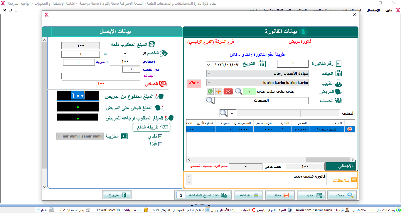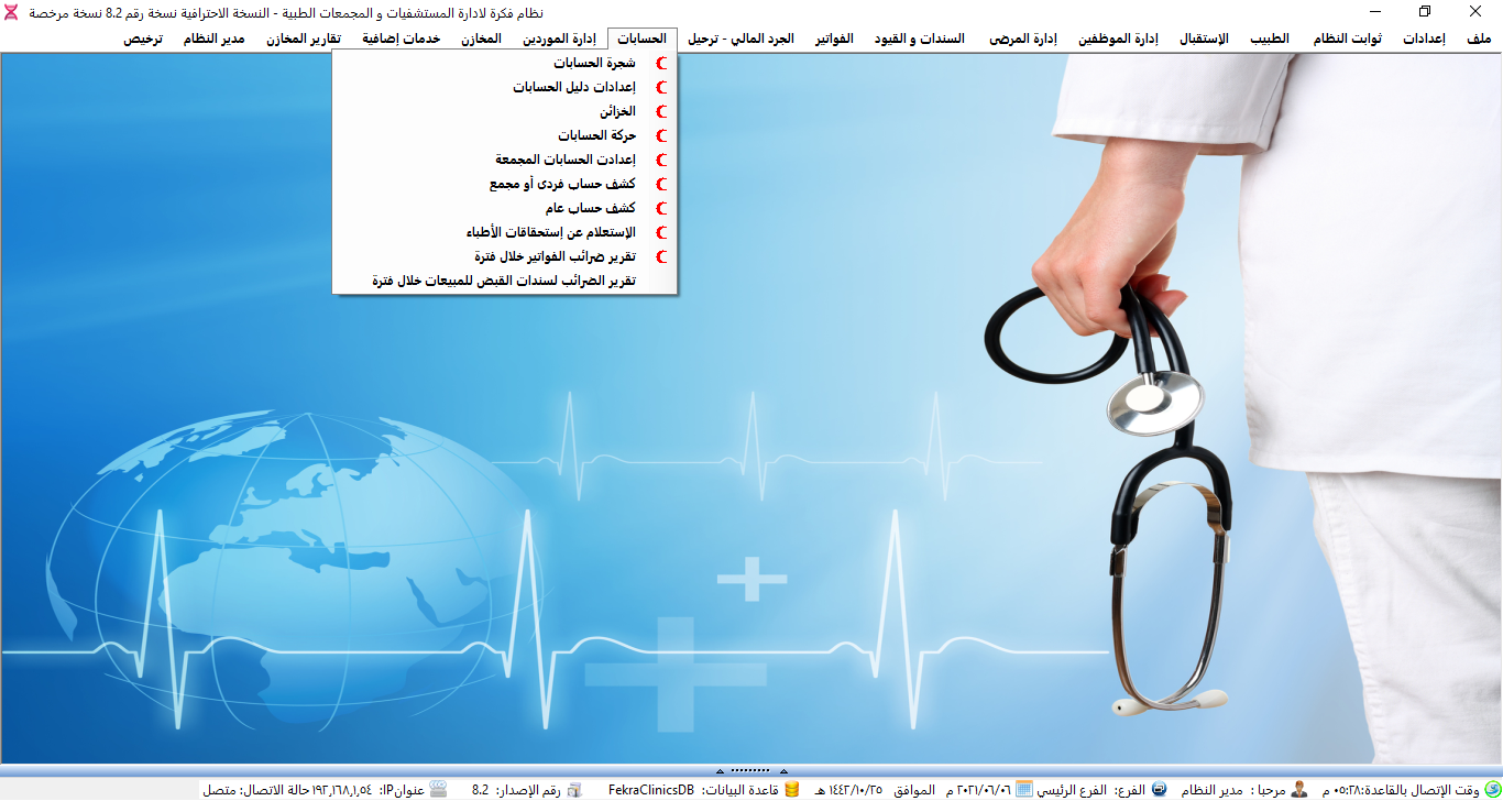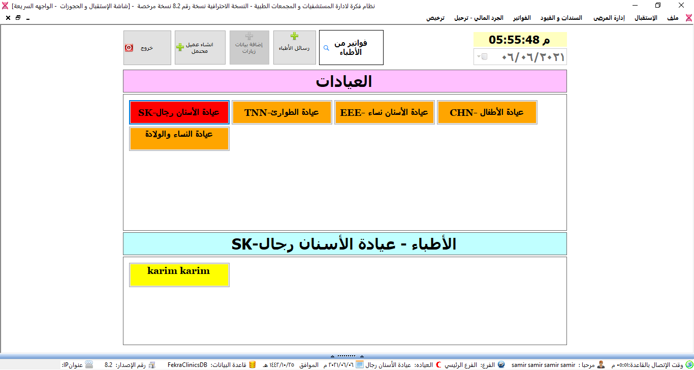 نظام ادارة العيادات الطبية ولوحة تحكم البرنامج.