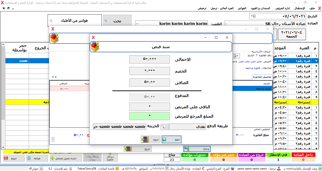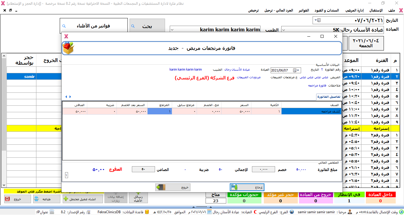 لقطات حية من برنامج إدارة المراكز الطبية والعيادات، مزايا بلا حدود