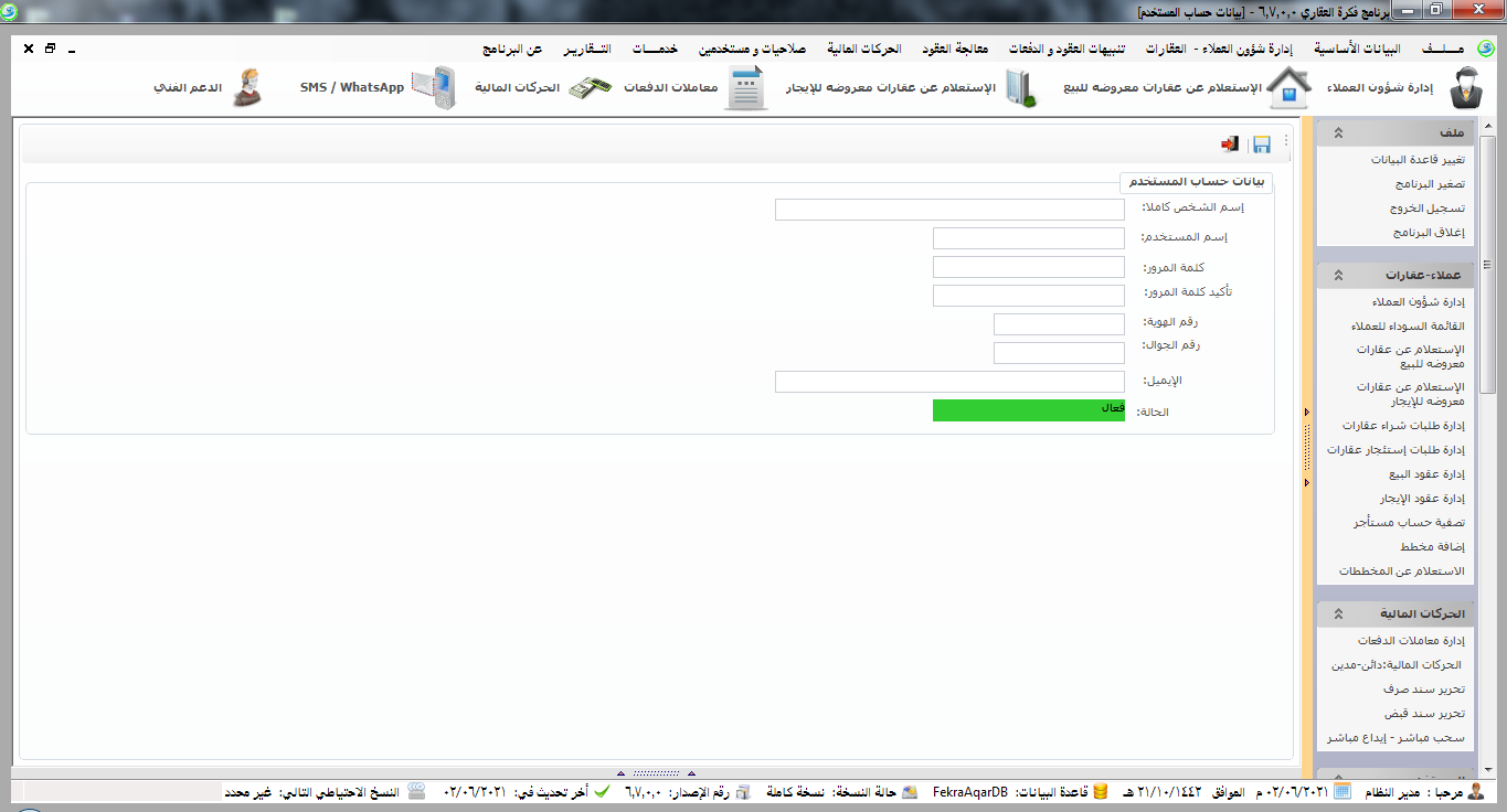 ويوفر لك برنامج إدارة الأملاك و تأجير وعروض عقارية متكامل أو برنامج ادارة املاك و نظام ادارة العقارات من مؤسسة "فكرة" لوحة تحكم قوية وسهلة الاستخدام تدعم العمل باللغتين العربية والإنجليزية؛ حتى يتمكن المستخدمين من أصحاب مكاتب وشركات العقارات من التعامل معها واستخدام البرنامج بسهولة وفاعلية بما يحقق أقصى استفادة منه في إدارة مكاتبهم أو شركاتهم العقارية عبر أفضل برنامج عقاري ومحاسبي كامل وممتاز وهو برنامج إدارة الأملاك و تأجير وعروض عقارية متكامل الذي تقدمه مؤسسة "فكرة برمجية لتقنية المعلومات".