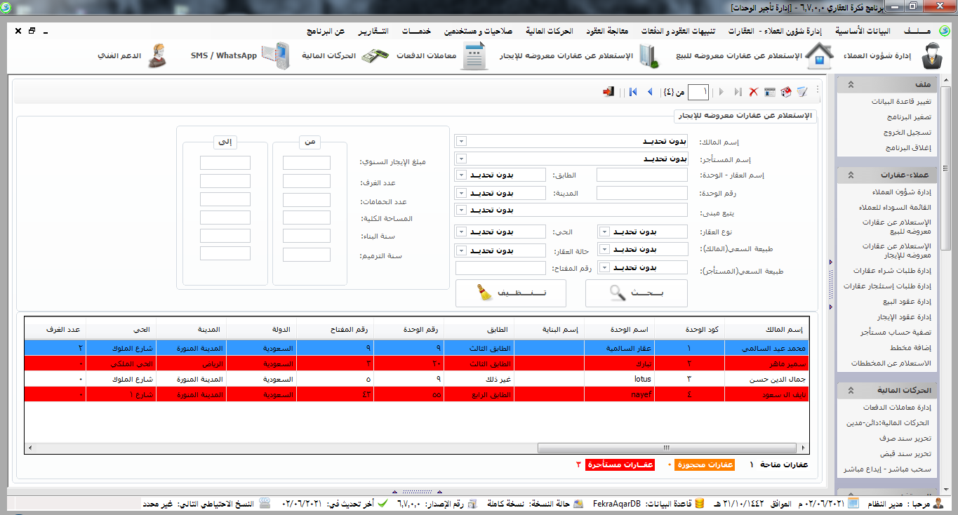 إذا كنت صاحب مكتب عقاري أو صاحب أملاك وعقارات وترغب في إدارتها باحترافية وتأجيرها ومتابعة المستأجرين والإيجارات بسهولة ودقة، فأنت بحاجة إلى برنامج عقارات أو نظام ادارة العقارات فهو برنامج عقاري ومحاسبي كامل وممتاز واحترافي في نفس الوقت.
